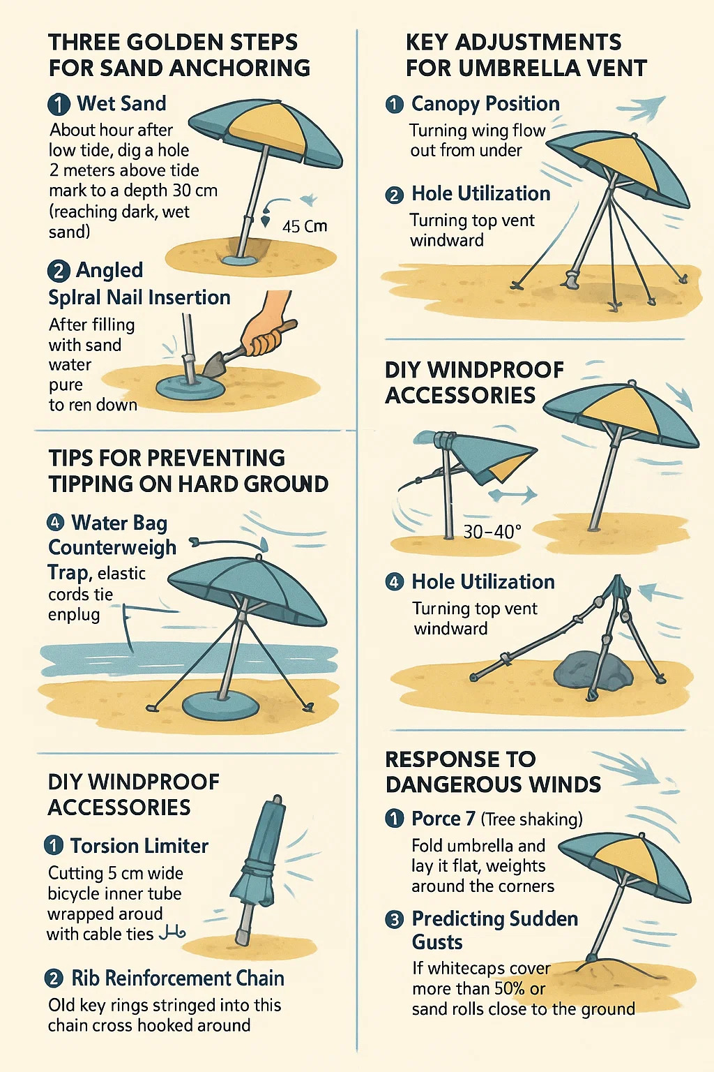 Seo a leanas leideanna praiticiúla suiteála chun a chinntiú a scáth trá trá tá sé seasmhach agus gaoithe: