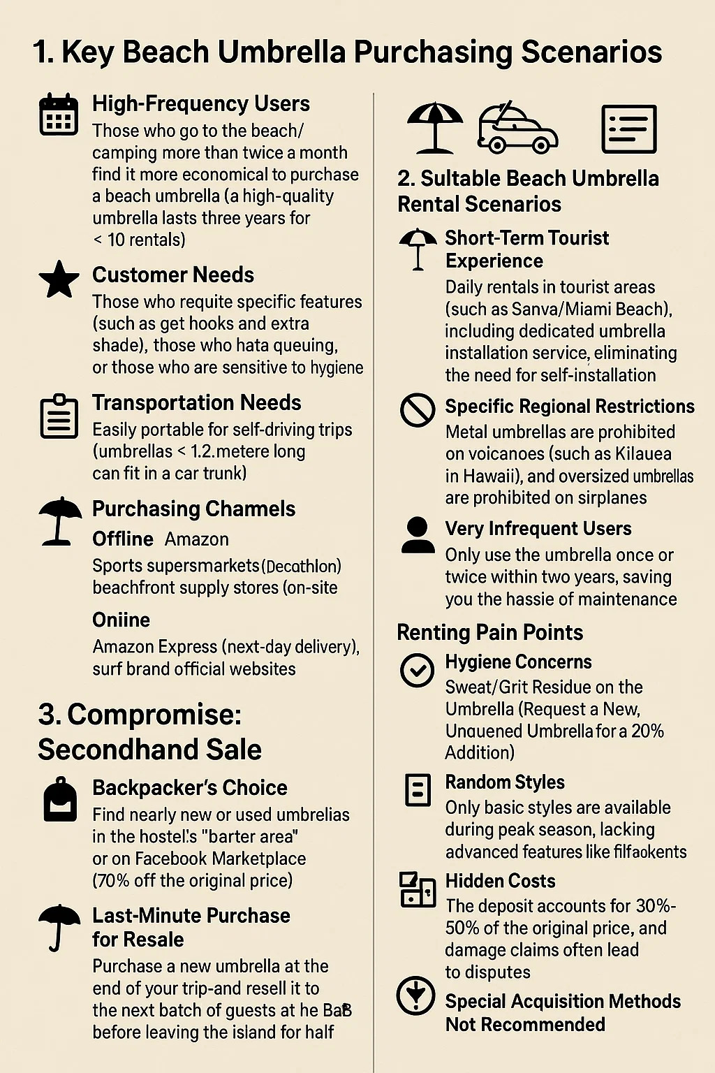 Ag fáil a scáth trá trá Éilíonn sé solúbthacht bunaithe ar mhinicíocht úsáide, nádúr turais, agus buiséad. Seo a leanas anailís eimpíreach: